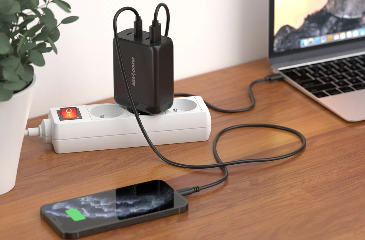 Alza offers a 200W charger at a great price! It charges a MacBook, tablet, and two phones simultaneously